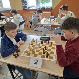 - W tej królewskiej dyscyplinie wzięło udział 40 uczniów z klas IV-VIII. Turniej odbywał się systemem szwajcarskim, na dystansie 8 rund, tempo gry 15 minut na zawodnika.