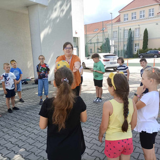 Dzieci miały także okazję pobawić się trochę z językiem angielskim. Wzięli udział w zabawach integracyjnych oraz w grze Chinese Whispers, czyli po polsku „głuchy telefon” Trzy grupy rywalizowały ze sobą, komu uda się przekazać do końca angielskie słówko