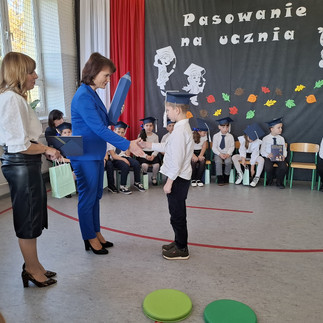 Najmłodsi uczniowie zaprezentowali program artystyczny pełen radości i dziecięcej energii, recytując wiersze i śpiewając piosenki. Po występie dyrektor szkoły - Aneta Sompolska dokonała symbolicznego pasowania ołówkiem, a uczniowie złożyli ślubowanie na sztandar szkoły. Na zakończenie otrzymali pamiątkowe dyplomy i drobne upominki, a wspólny poczęstunek przygotowany przez rodziców był miłym zwieńczeniem tego dnia.